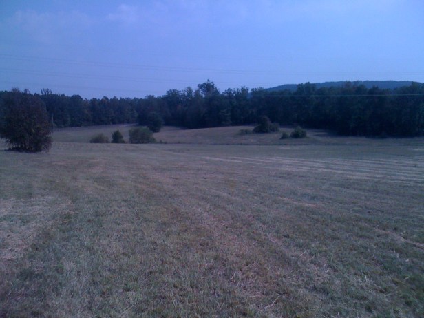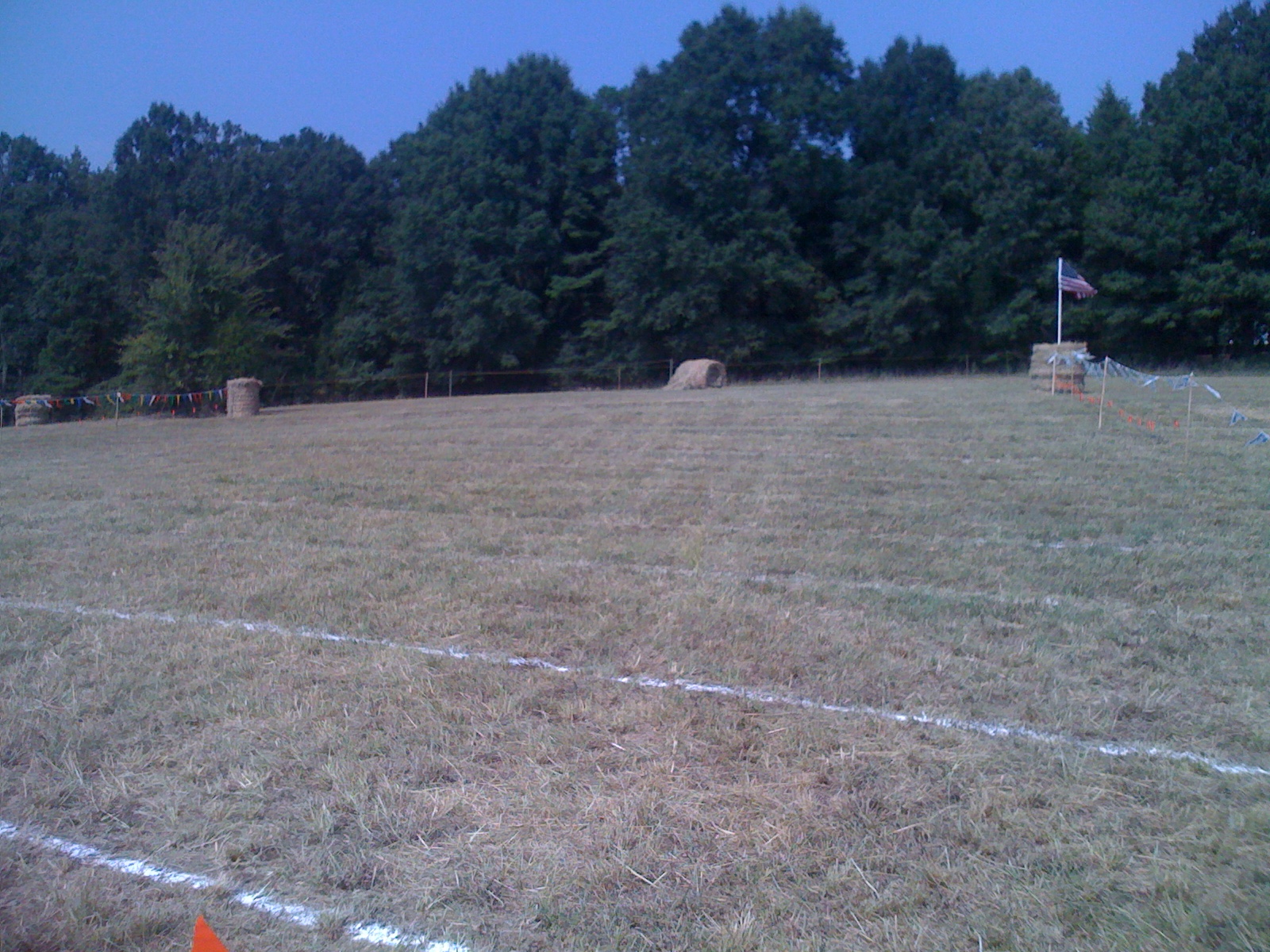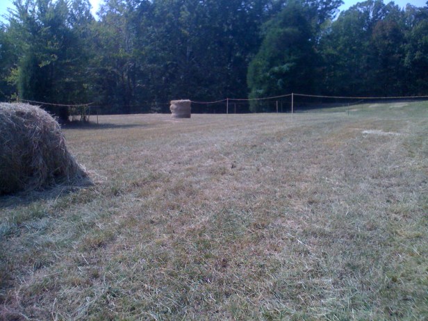 View from the first turn. From here it snakes it's way around the haybales and around the tree, then into the woods.