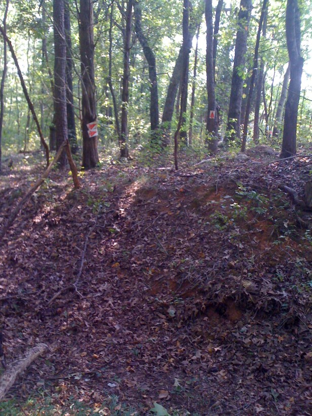 After the rocks piles the track will work it's way back through the woods to this cool off-camber section.