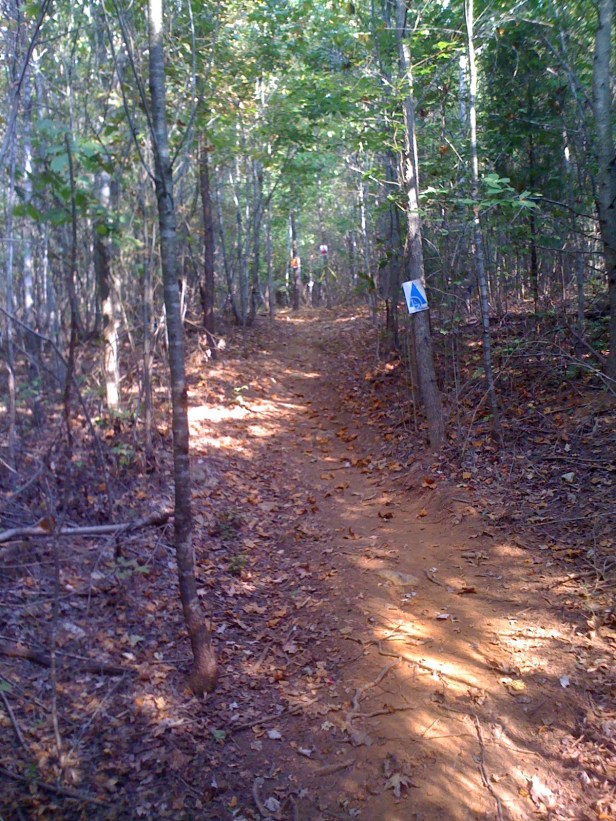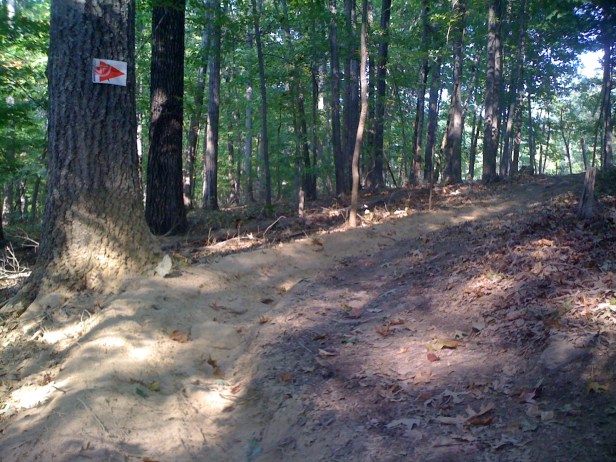 Further down the big bike trail you will run into some more off camber sections next to High Rock Lake, which you can see on the right. Don't worry, there's easy ways around the harder off camber sections but those will be longer!